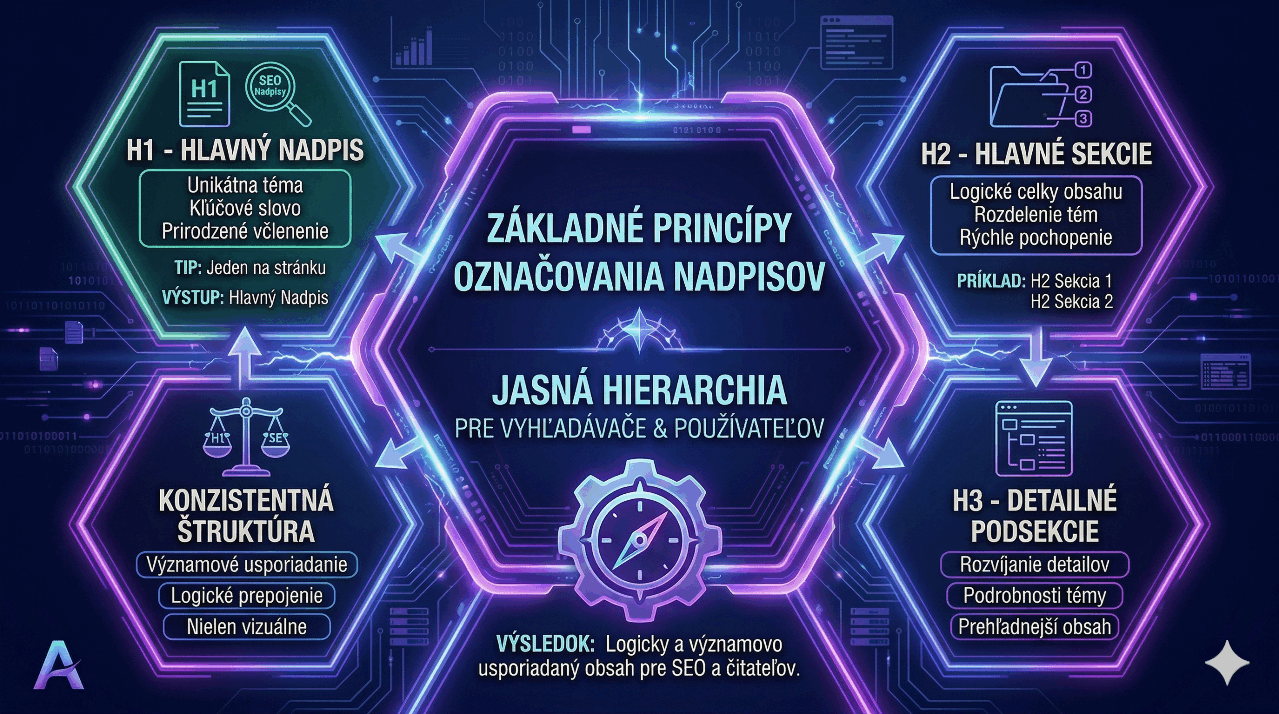 Každá stránka by mala mať jasne definovanú hierarchiu nadpisov. Táto štruktúra pomáha nielen vyhľadávačom, ale aj používateľom.